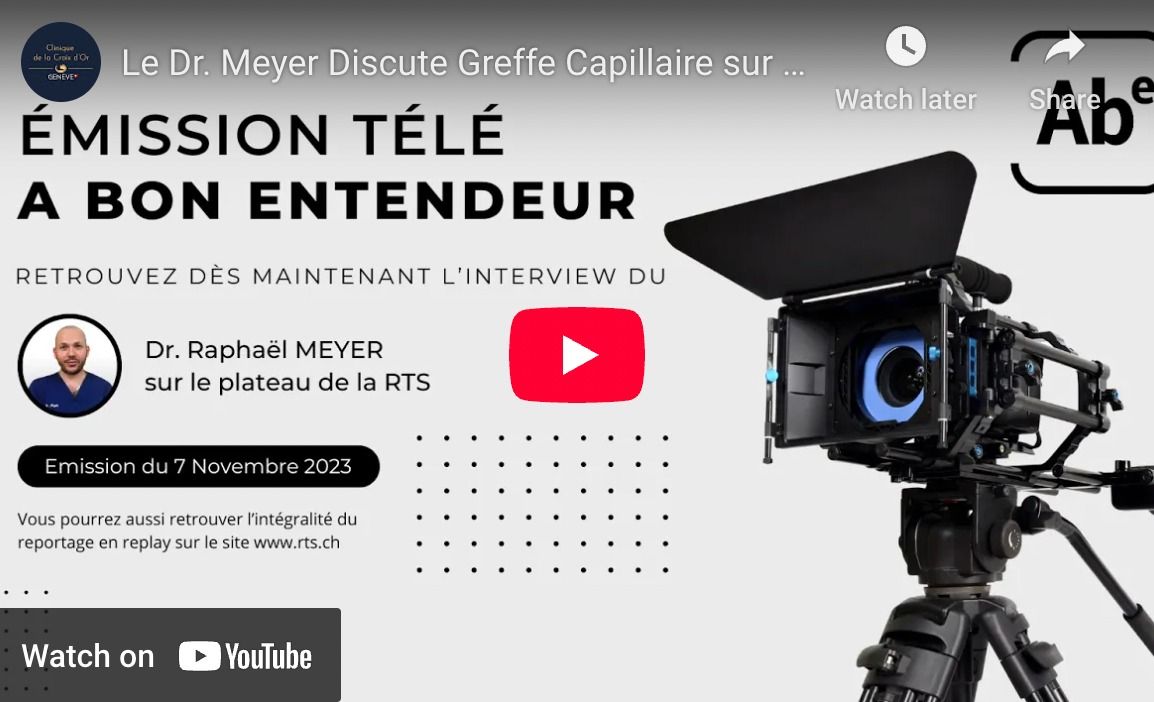 Découvrez notre sélection de reportages et interviews réalisés par des médias reconnus comme la RTS et Le Figaro mettant en lumière l'expertise de la Clinique du Cheveu. Ces vidéos vous permettent d'approfondir votre compréhension de nos techniques innovantes et d'entendre les témoignages de patients satisfaits.